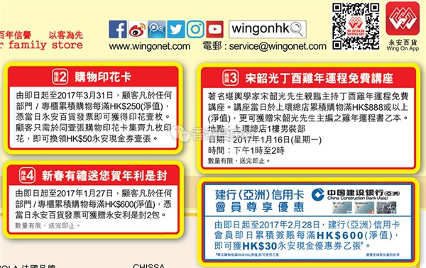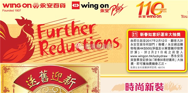 香港打折:永安百货Further Reductions 2 - 送旧迎新+贺年食品优惠低至5折(至2月1日)
