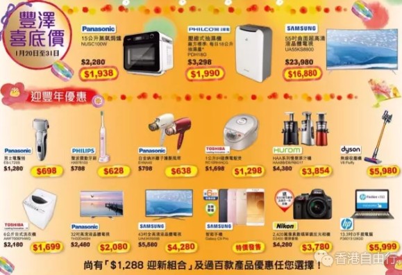 香港打折:多家电器行迎新年大优惠(丰泽、百老汇、卫讯)