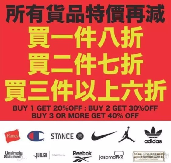 一连7日, 将会进行劈价大平卖, 所有男女童装Nike,Jordan,Reebok, adidas, Publish, Champion波鞋/Tee/裤/背包/袜/等等; 最平低至三折, 而且买得多,折扣越多!