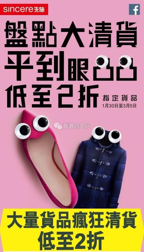 香港优惠:先施百货盘点大清货海量货品低至2折(至3月5日)