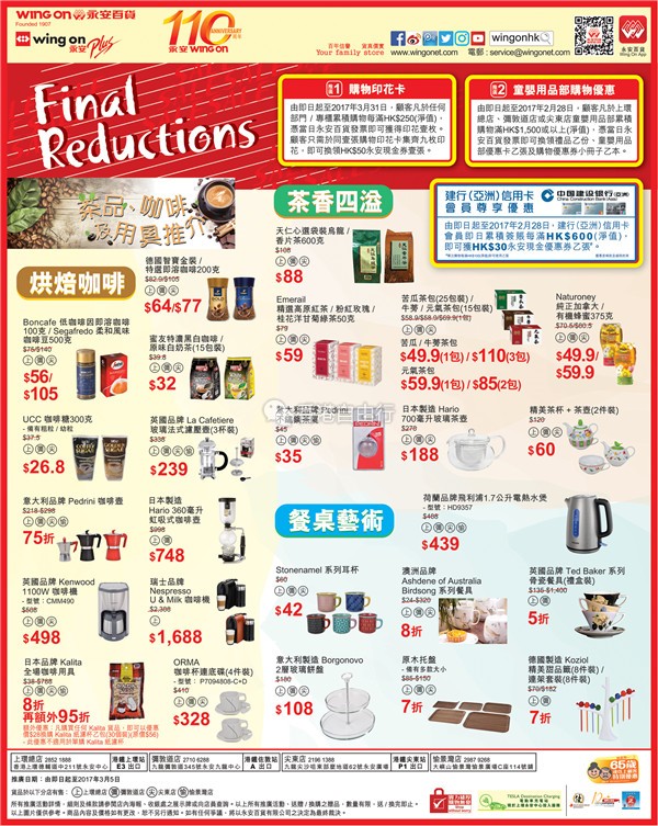 香港打折:永安百货Final Reductions 茶品、咖啡及用具优惠(至3月5日)