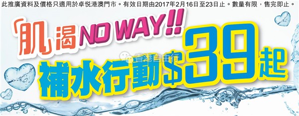 香港打折:肌渴NO WAY!补水行动$39起 卓悦最新门市优惠(2月16至23日)