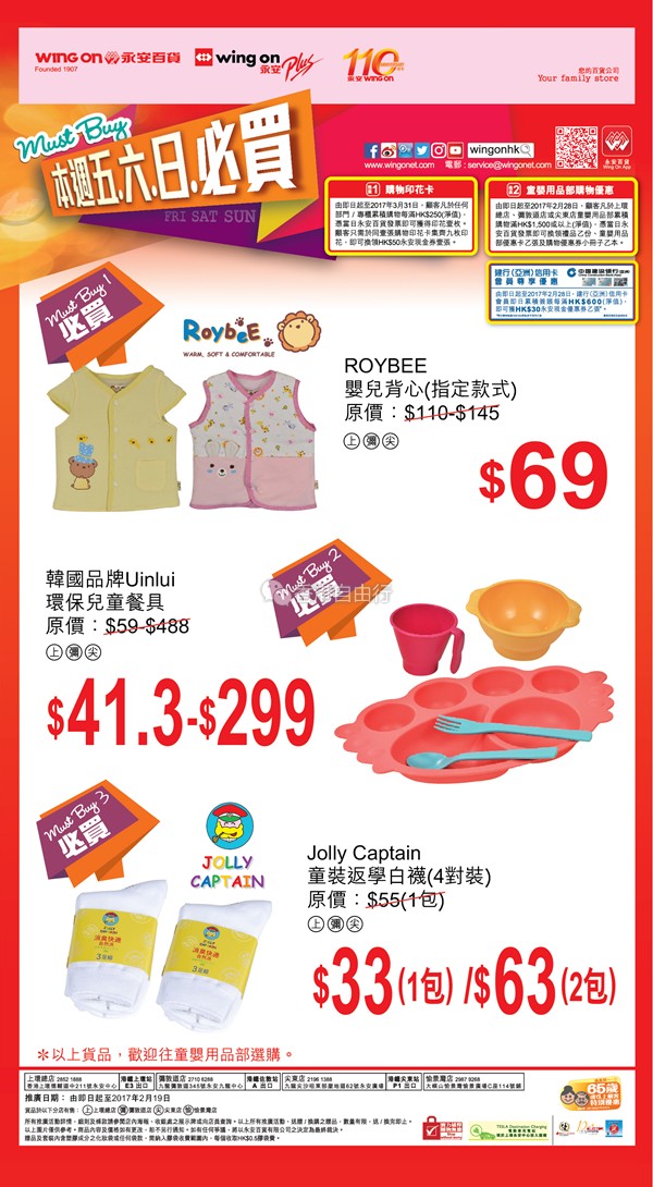 香港优惠:永安百货本周五六日必买货品推广优惠(2月17日至19日)