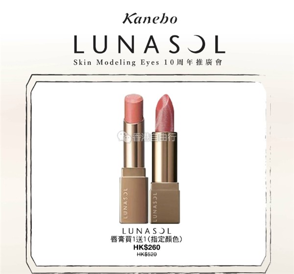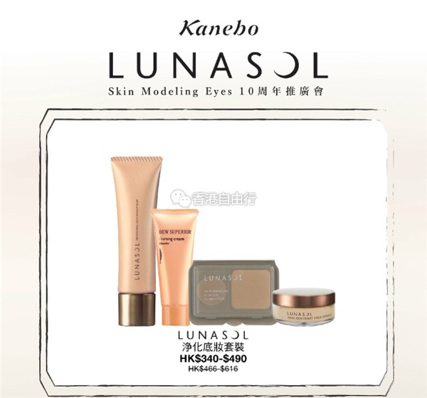 2月22至28日KANEBO在崇光(铜锣湾店)新翼G/F有Skin Modeling Eyes10周年推广会,选购不同的彩妆优惠套装为自己打扮一下吧。