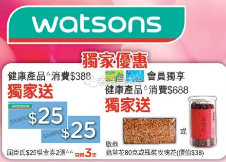 香港打折:超全海报!屈臣氏最新店内购物优惠(17年2月24至27日)