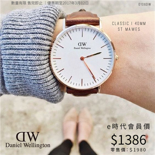 黑色Daniel Wellington再度回货 限时优惠会员7折