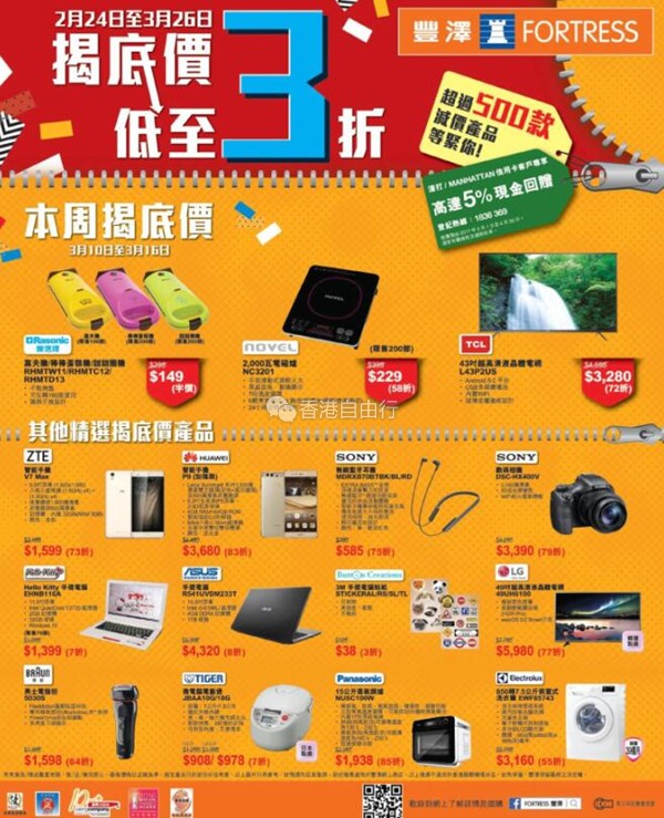 香港打折:超过 500 款精选减价货品!丰泽揭底价优惠低至3折(至17年3月26日)