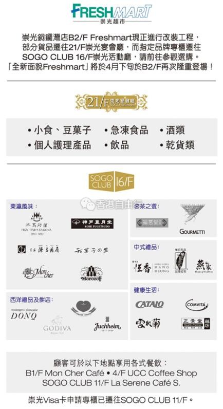 香港打折:SOGO崇光百货铜锣湾店本周最新优惠海报汇总(3月15至21日)