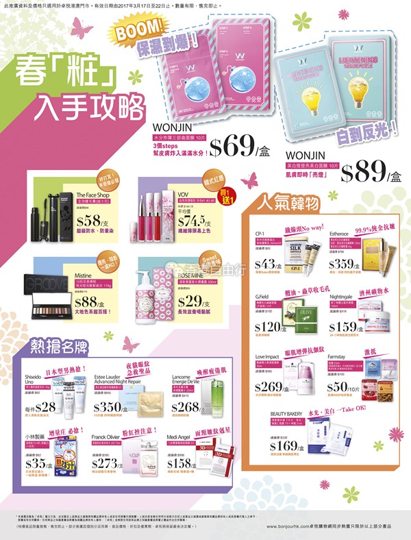 香港打折:春妆入手攻略!卓悦bonjour门市最新优惠海报(至17年3月22日)