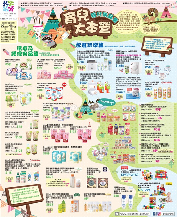 香港打折:至抵买!!!千色Citistore婴儿用品展优惠(至4月18日)