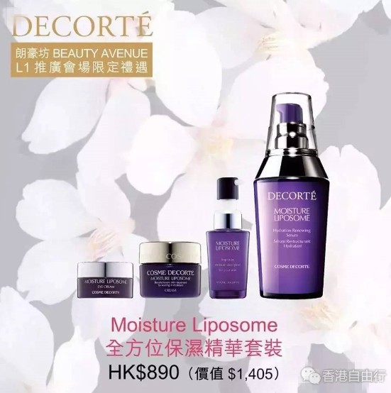 届时于推广会场购物满$500并成为DECORTE的新会员,更可得到LIPOSOME保湿化妆水30mL(价值$122)一份*。