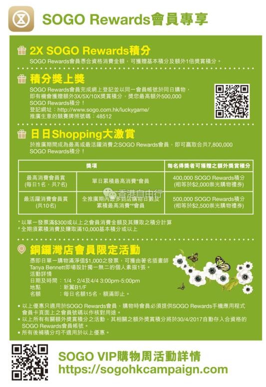 香港打折:SOGO崇光百货铜锣湾店本周最新优惠海报汇总(3月29至4月4日)