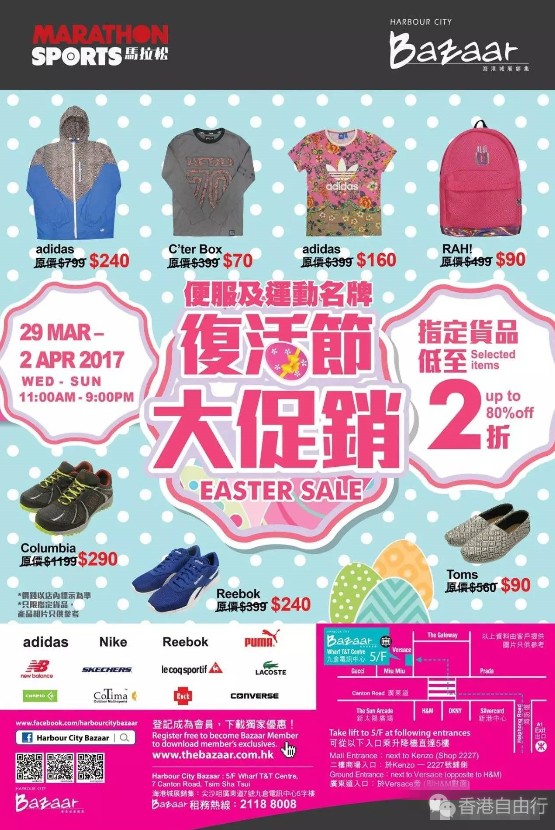 马拉松在海港城举行便服及运动名牌复活节大促销精选货品低至2折...最低$90就能买到Adidas、Toms