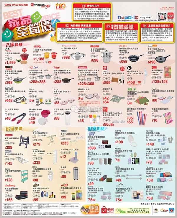 香港打折:永安百货家品精选购物优惠(至17年4月17日)