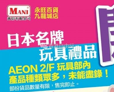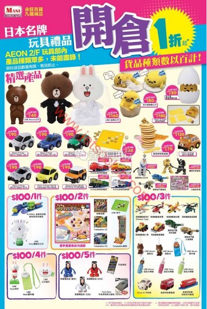 AEON九龙城店举行日本名牌玩具礼品开仓!货品种类数以百计,产品1折起!