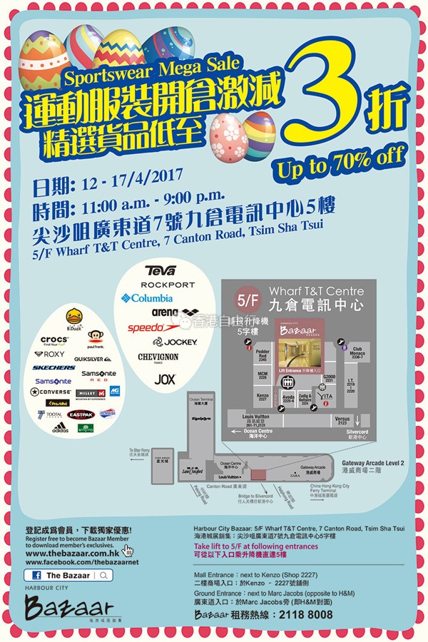 香港优惠:海港城Bazaar 运动服饰开仓激减低至3折(4月12至17日)
