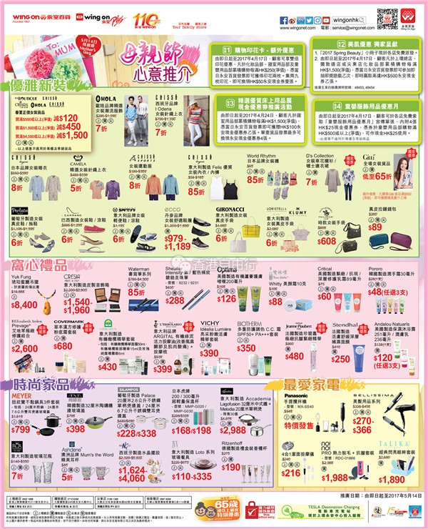 永安百货推出多重优惠,包括母亲节化妆品、服饰、鞋包等优惠,还有家品及内衣等优惠。
