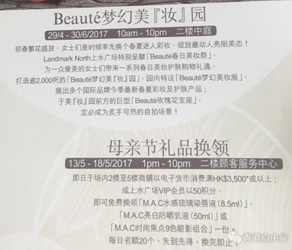 上水广场美妆季来了!大品牌护肤妆品的推广!优惠有效期至6月30日。以花为主题,大家购物之余,也可以来美美的拍照啦!