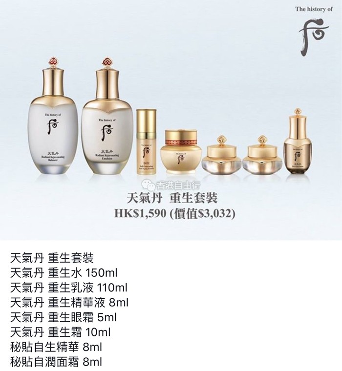 天气丹华炫系列含有山参玉珠、鹿茸粉骨、黄金紫杉等成分,能有效去除岁月留下痕迹,令肌肤滋润有光泽,焕发动人光采。套装内的天气丹重生水质地如精华液般浓厚,可将营养成分渗透至皮肤底层,显著提升皮肤亮度。而天气丹重生乳液能由内而外提升肌肤光采,并可令肌肤时刻维持在最佳状态。