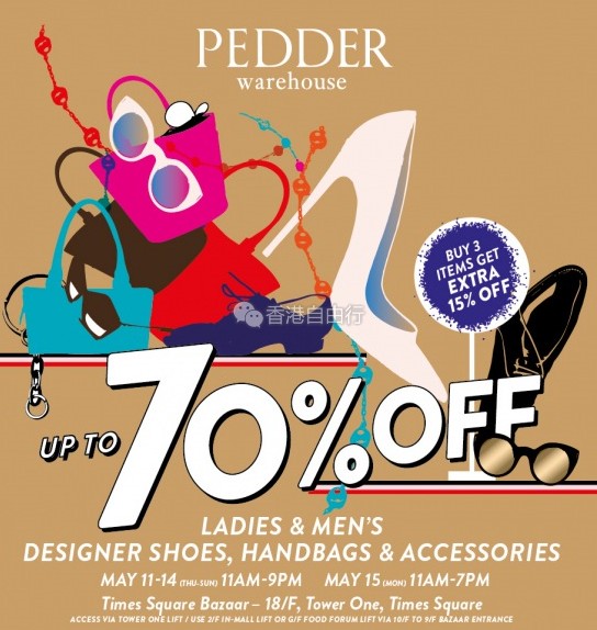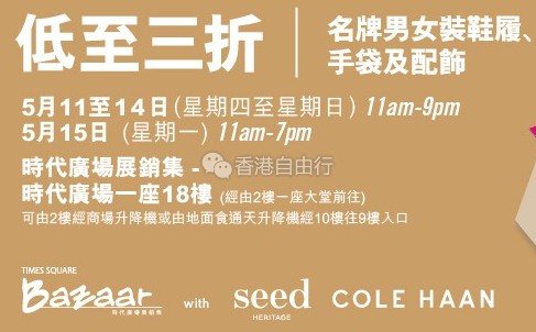 香港优惠:时代广场BAZAAR名牌男女装鞋履、手袋及配饰低至三折(5月11至15日)