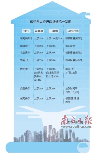按照目前的房贷发放情况来看,东莞浦发银行等部分银行因暂时额度告罄无法放款二套房贷款,而东莞农行、东莞邮储银行、东莞交通银行在二套房房贷利率在基准利率的基础上上浮20%。而本土的城商行东莞农商行则略有浮动,二套房执行房贷利率在基准利率的基础上上浮15%至20%。
