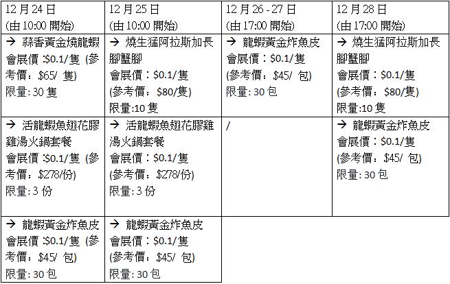 每日派出10个名额,参加者可於限时内用$1 任夹进口高级食材,包括: 熟龙虾、和牛牛扒、黑毛猪午餐肉...