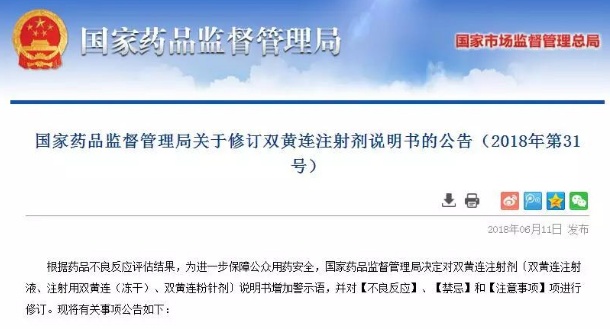 6月11日、12日和14日,国家药监局陆续发布三则公告,先后要求双黄连注射剂、丹参注射剂、天麻素注射剂修订说明书。公告称: