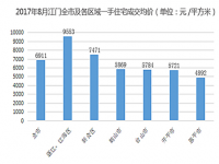 数据显示,8月,江门市一手住宅成交量及成交均价环比均呈下跌态势,成交量4618套,环比下跌19%;成交均价6911元/平方米,环比下跌3.1%。