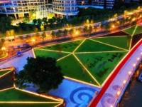 一朵朵向日葵迎海盛开、一颗颗红星草丛林立、一个个光球在公园各处散落。进入傍晚,这些元素发出幻彩流光,再配以投影到行人道上的紫荆花海,呼应不远处的LED大屏,点亮了整个公园。