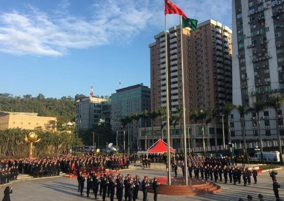 12月20日清晨,澳门特区政府与驻澳门部队分别举行升国旗仪式,庆祝澳门回归祖国18周年。