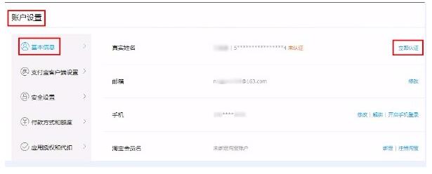 登录支付宝账户( www.alipay.com),点击【账户设置】—【基本信息】—【立即认证】